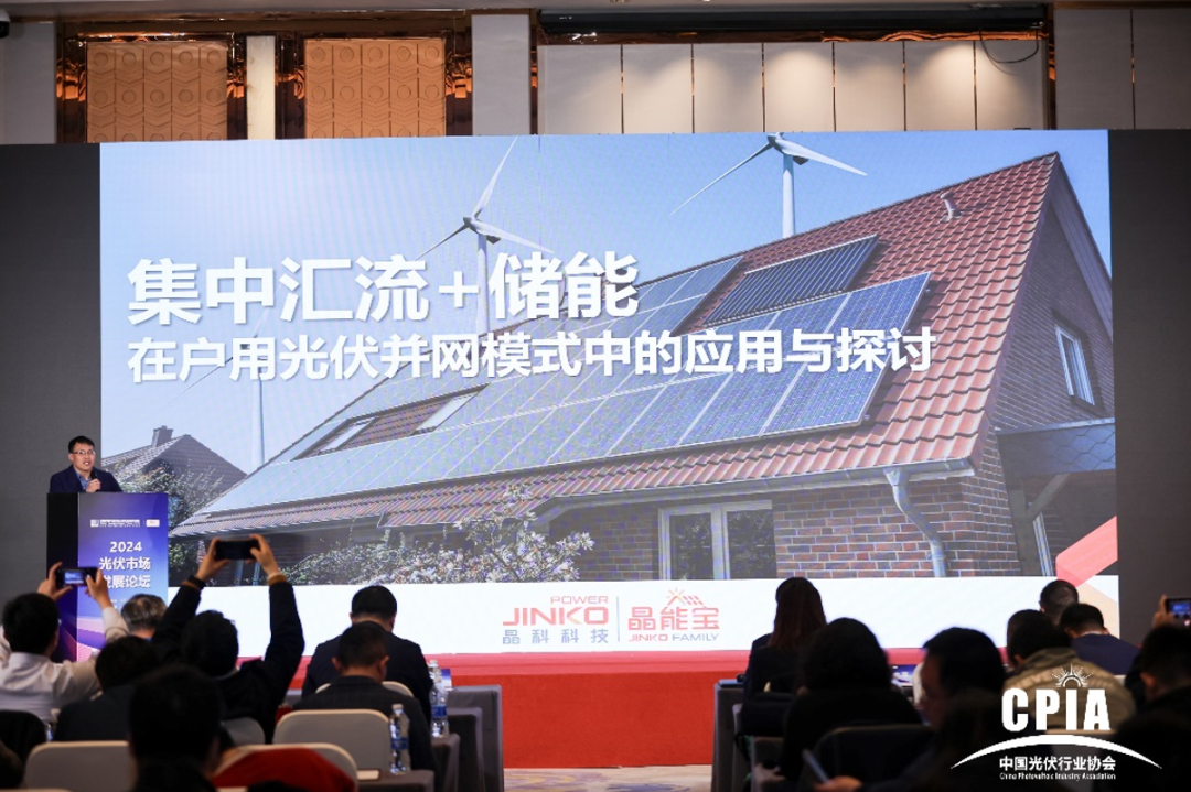 js3333线路检测中心科技户用事业部品牌副总监周新亮代表晶能宝在大会上进行了内容分享,他结合行业发展趋势和机遇,深入剖析了晶能宝的平台实力、创新应用以及成功案例,尤其是晶能宝在集中汇流和储能在户用光伏并网模式中的实际应用案例——山西省晋中市祁县峪口乡段家窑村整村汇流。